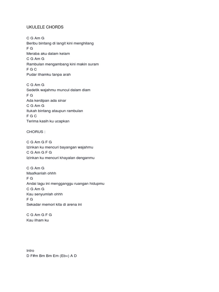 Last edit on Oct 14 2017. Intro Ab Bb Ab Ab Bb Ab Bb Ab Bb Cm Izinkanlah ku titiskan Bb Airmata keresahanku Eb Cm Di cengkam kerinduan yang tak bertepi Cm Biarlah serpihan rembulan Bb Berguguran ke ribaanku Eb Agar terang kelam malam G Yang kita lalui Ab G Oh asyiknya Ab G Kalimah cintamu yang kau lafazkan. E A D G B E.